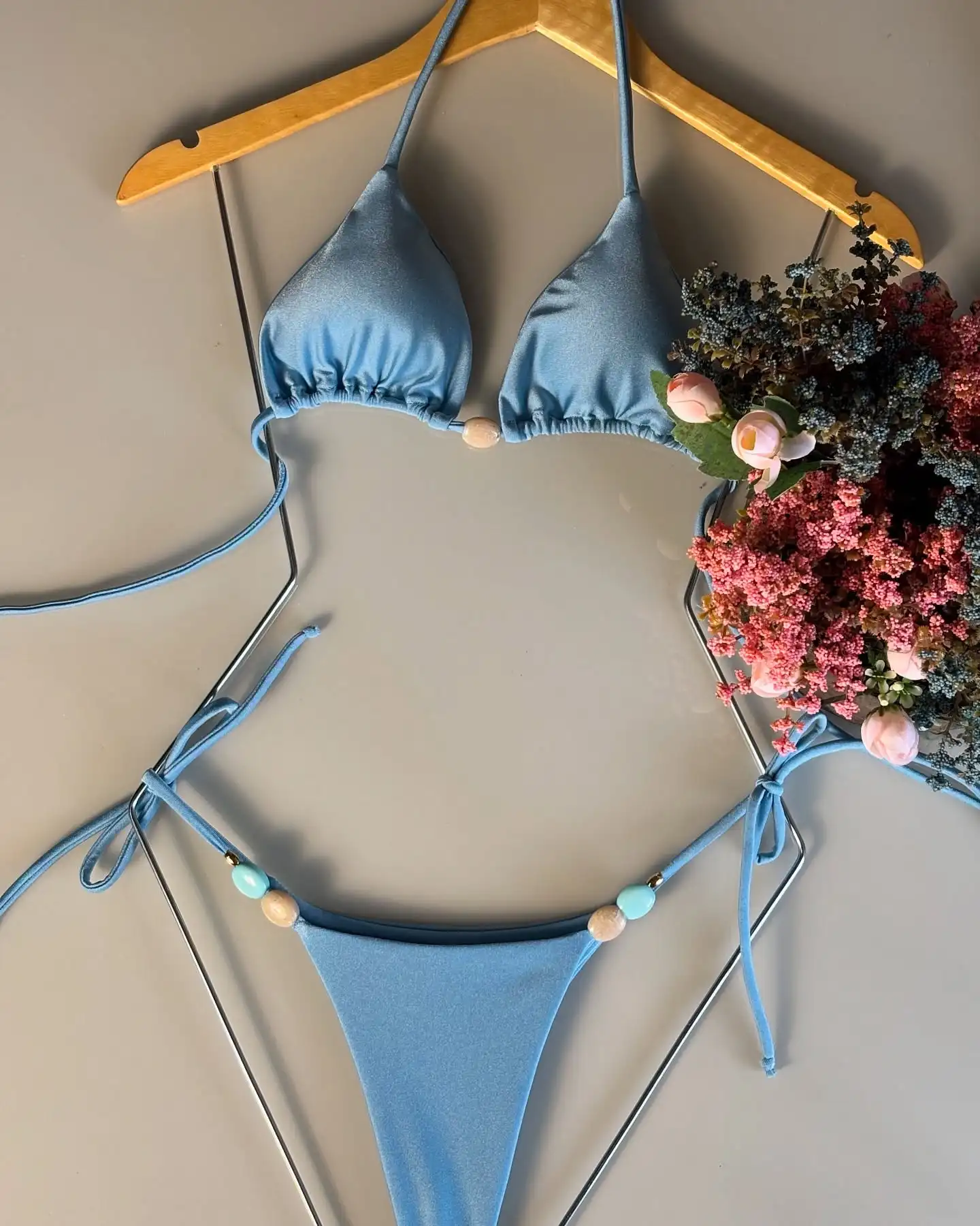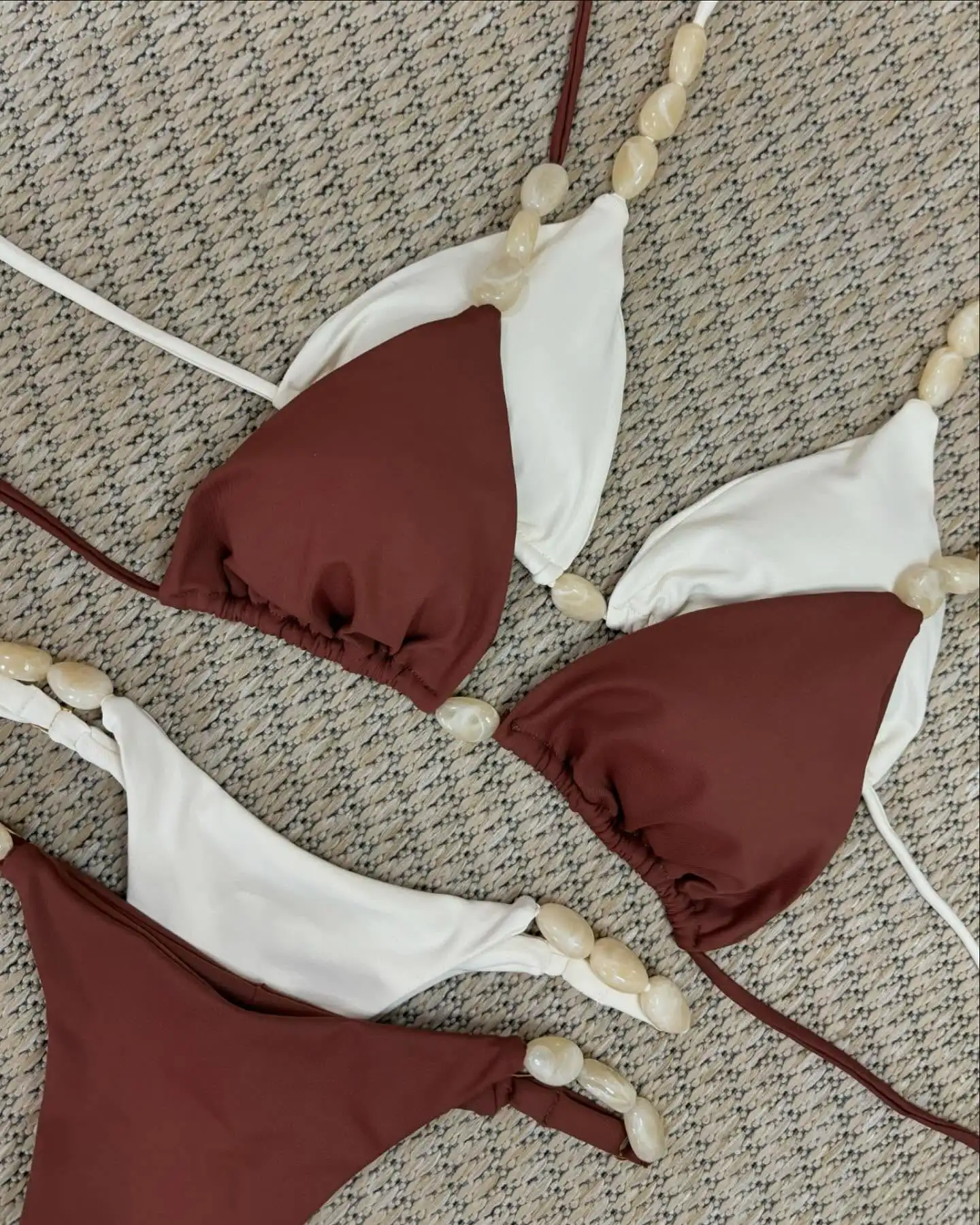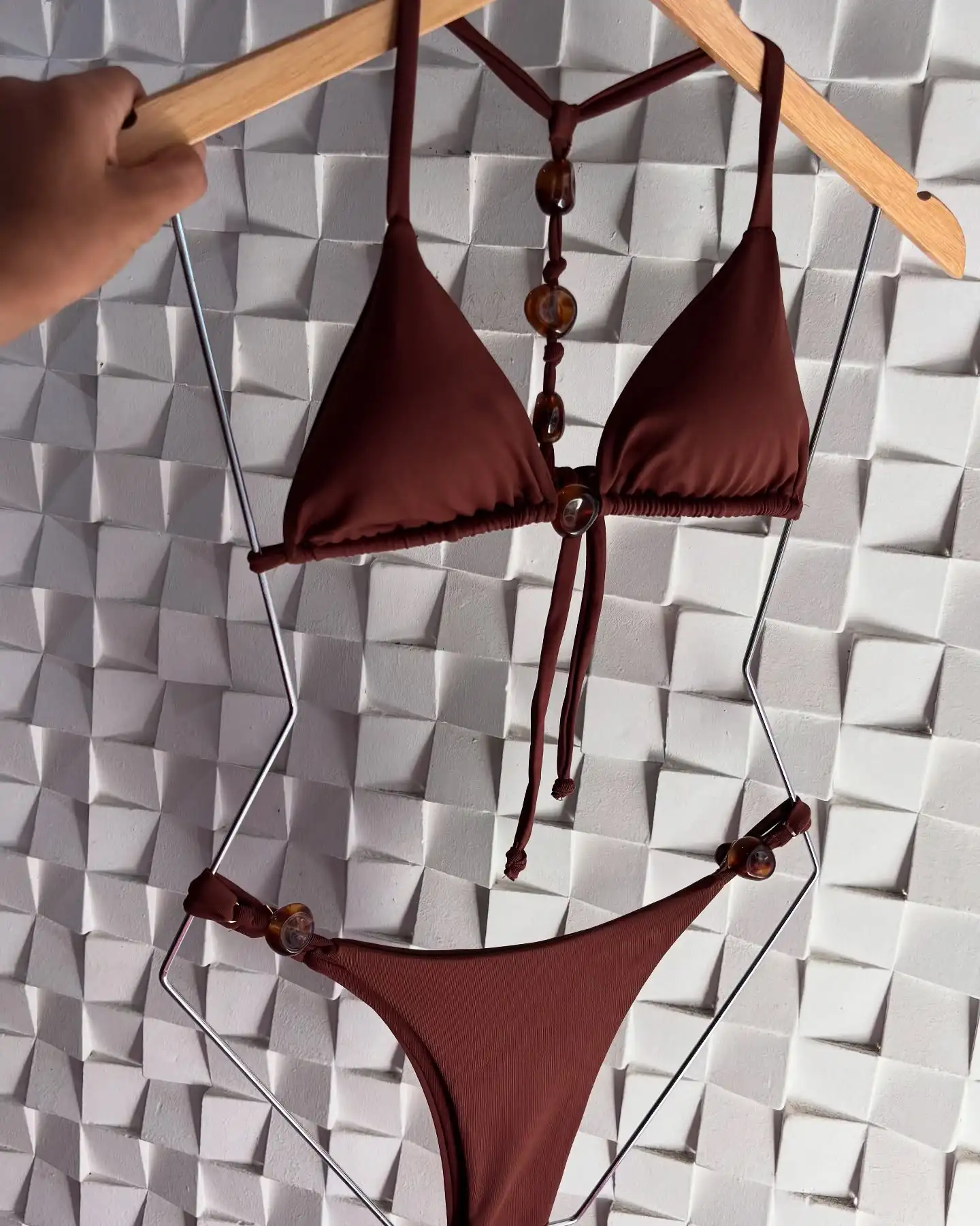 Bikini de dos piezas diseñado para realzar tu figura con un corte moderno y sofisticado. Confeccionado en tela elástica de alta calidad que ofrece soporte y comodidad durante todo el día. El conjunto combina un top ajustado con braguita de cintura media, creando una silueta favorecedora y elegante. Ideal para playa, piscina o cualquier ocasión donde quieras lucir segura y radiante. Disponible en múltiples colores para adaptarse a tu estilo personal.