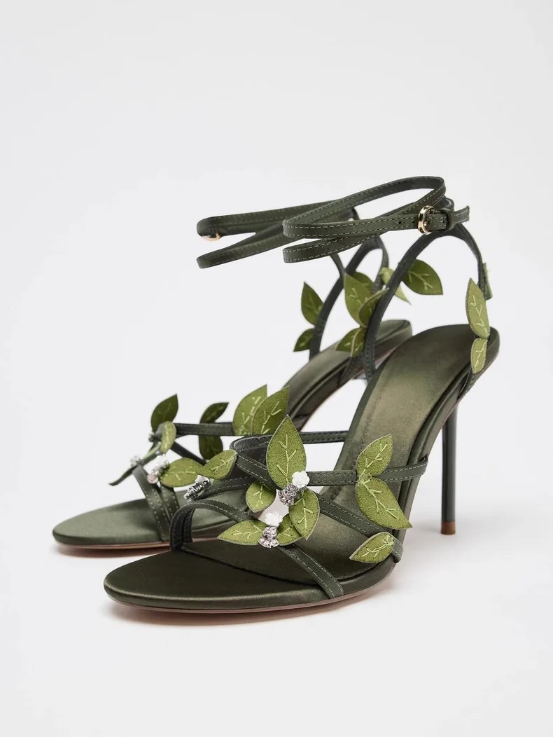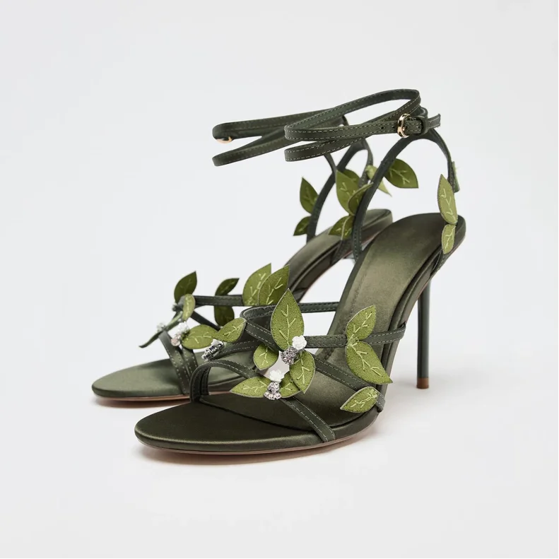 Descubre la elegancia en cada paso con estas sandalias de tacón de aguja que fusionan sofisticación europea con un toque contemporáneo. El diseño floral adornado añade un detalle artístico que transforma cualquier look, mientras que el verde vibrante se adapta a múltiples combinaciones de vestuario. El tacón de aguja proporciona una silueta alargada y estilizada, ideal para ocasiones especiales o salidas nocturnas. Confeccionadas con atención al detalle, estas sandalias ofrecen ese acabado premium que define la moda de temporada. Perfectas para quien busca destacar con un accesorio que combina tendencia global con personalidad única.