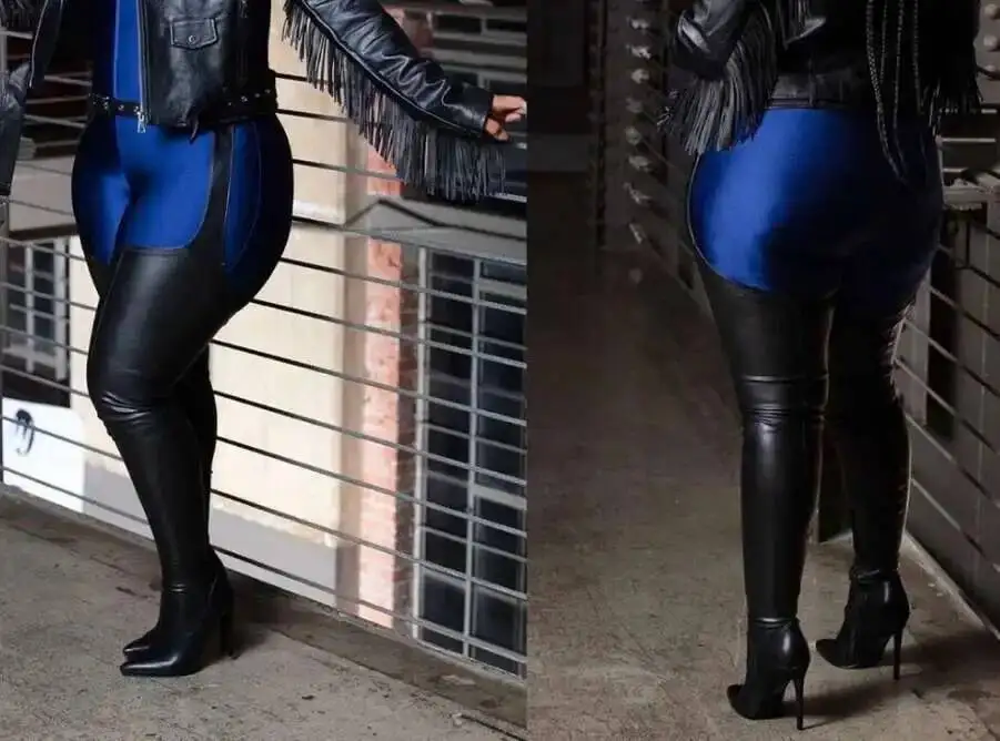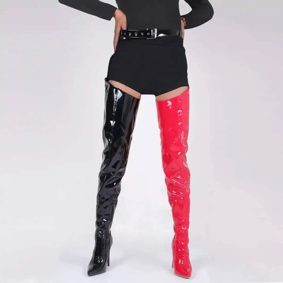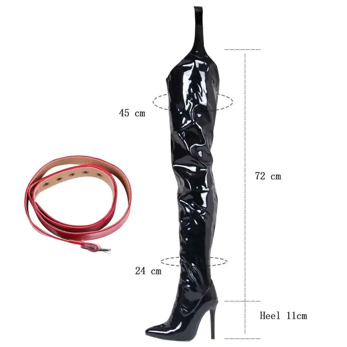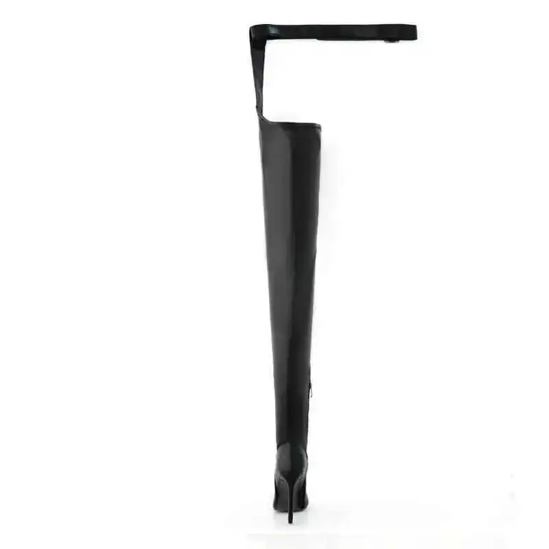 Botas altas hasta el muslo negras de talla grande 46, hebillas de cinturón sexis, tacón de aguja por encima de la rodilla, zapatos de mujer a la moda