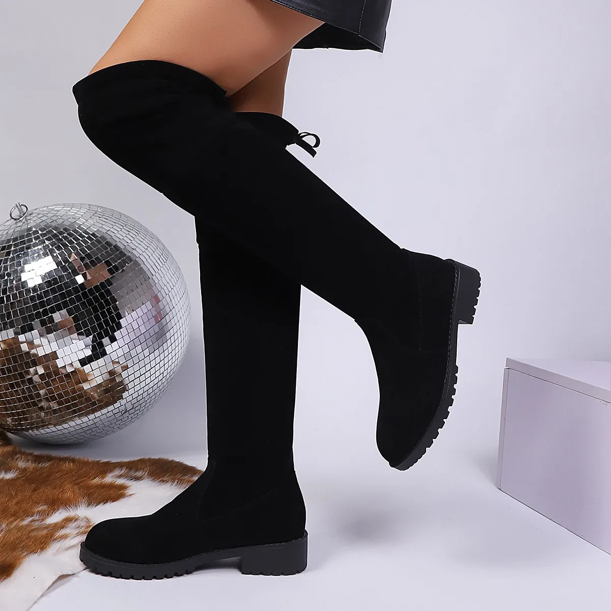 Botas de moto hasta la rodilla sexis con punta redonda elegantes en invierno botas de mujer cómodas y duraderas de nuevo estilo a la moda