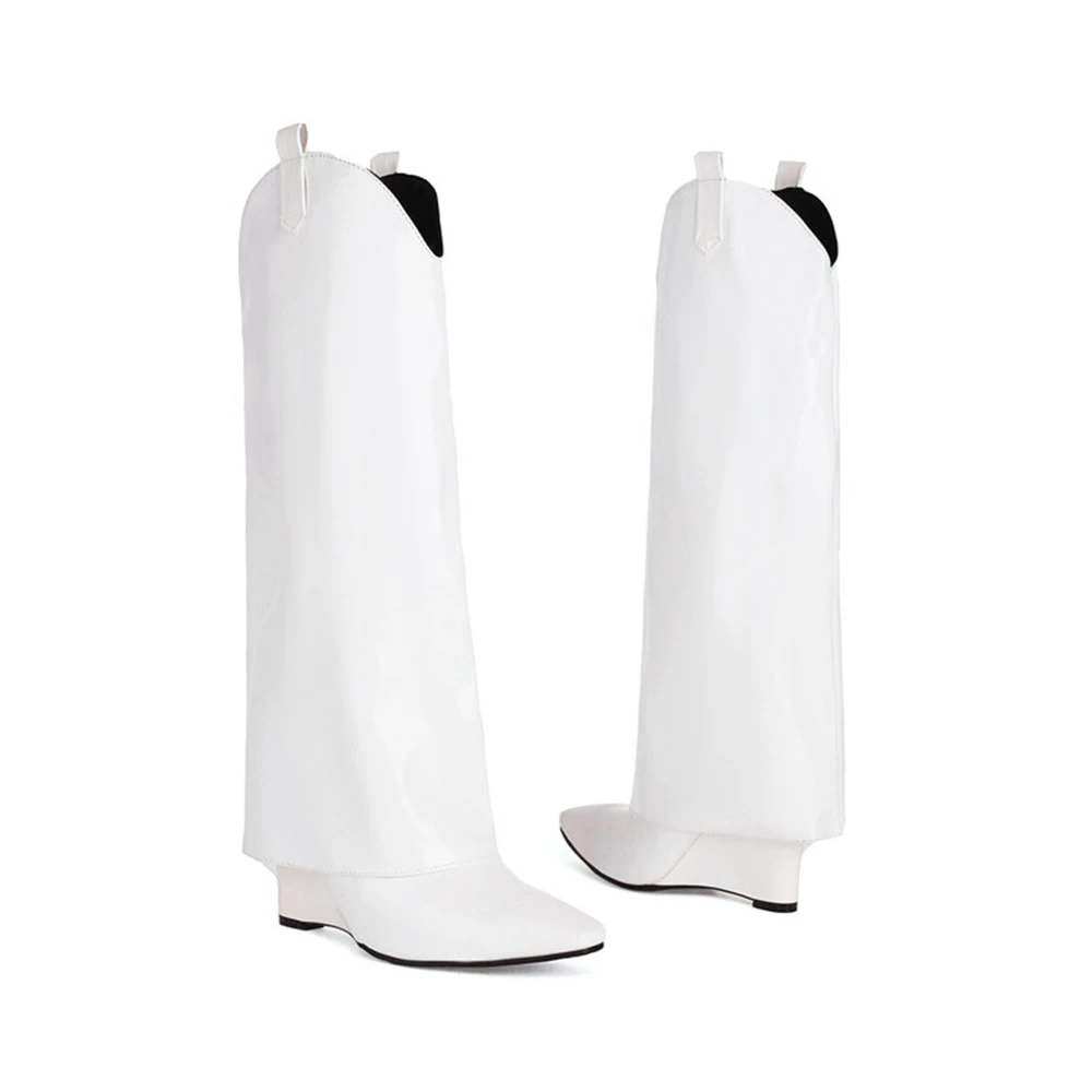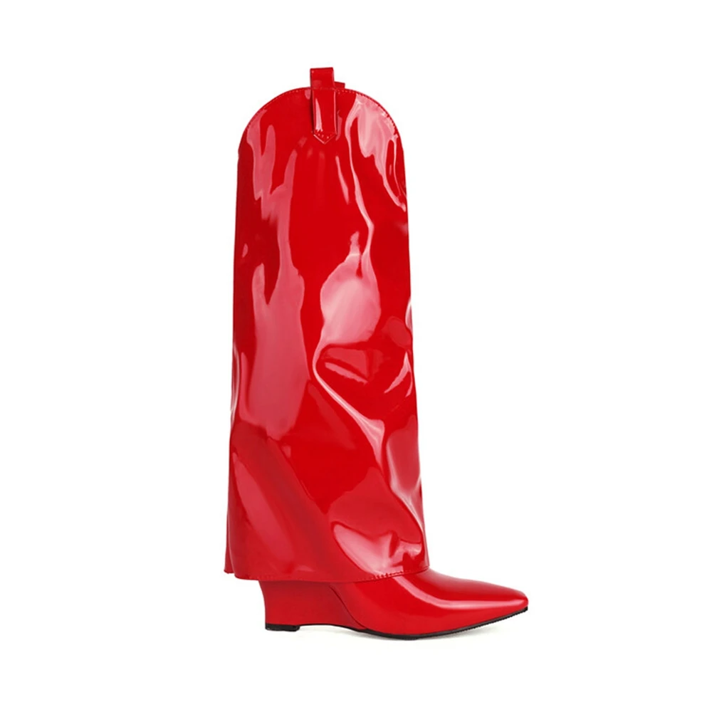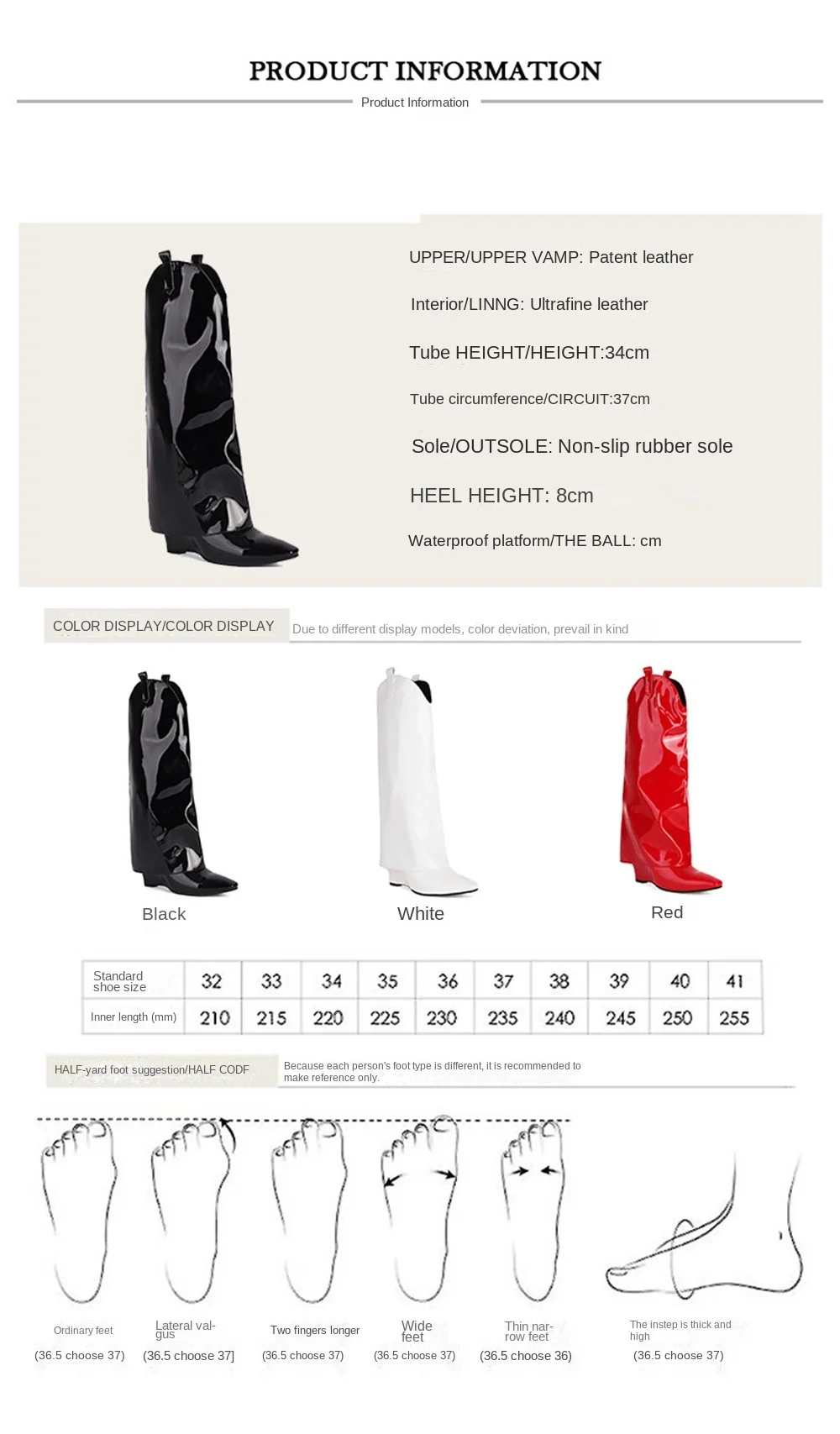Botas De Mujer hasta la rodilla, Botas sexis a la moda con cuña y punta estrecha, Botas De caballero Retro negras y rojas, talla grande 44 45 61-2