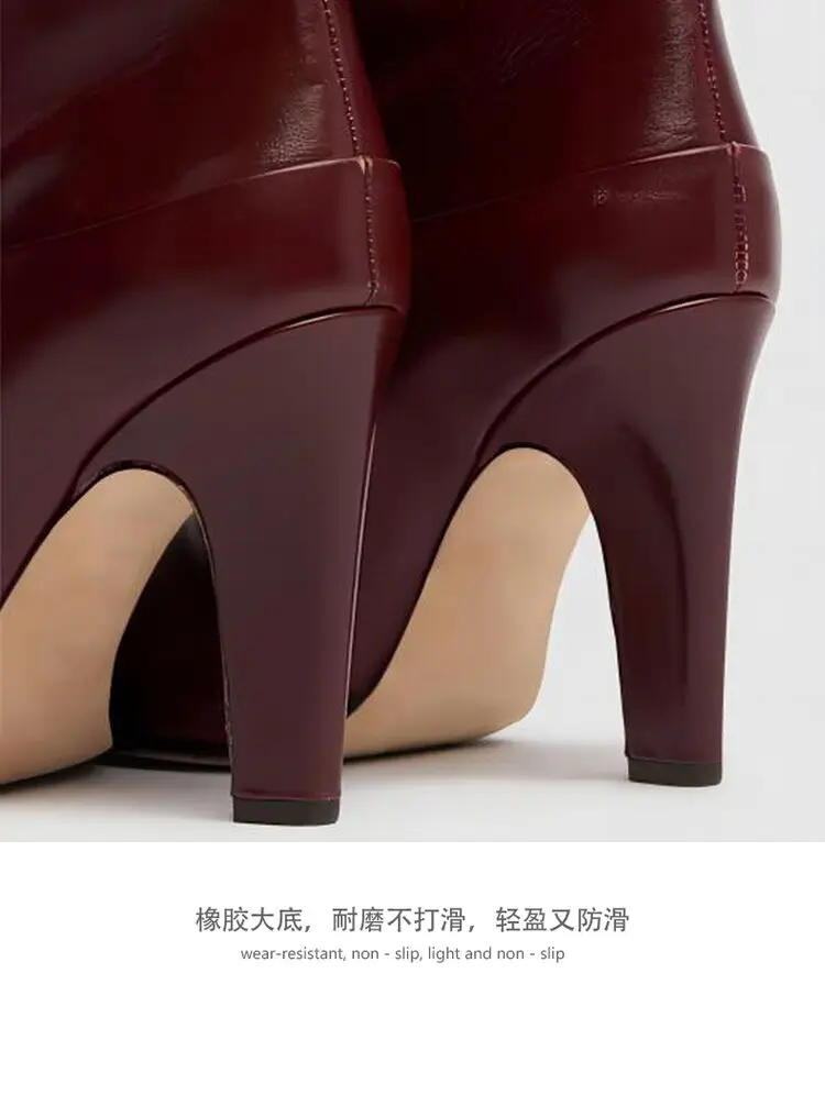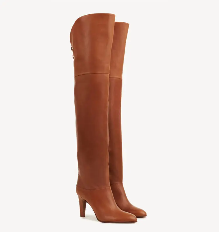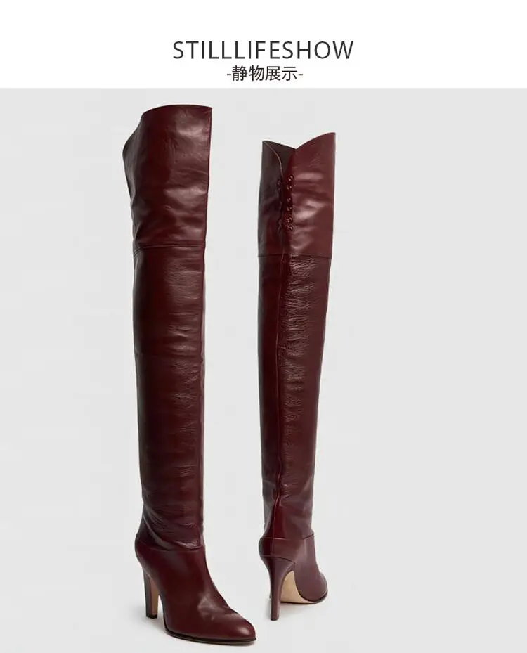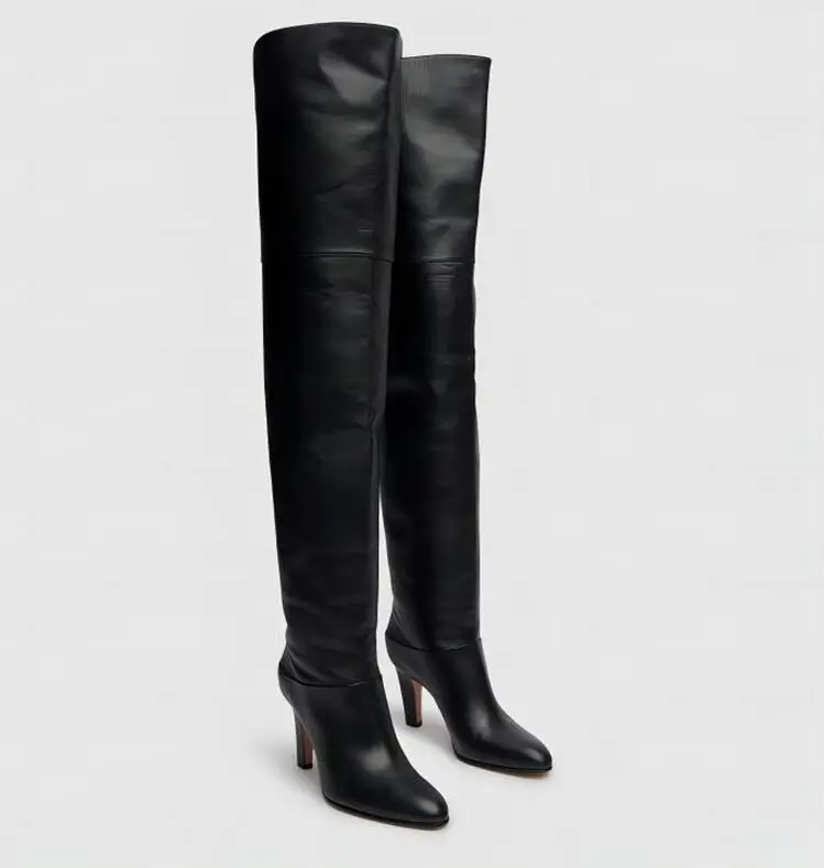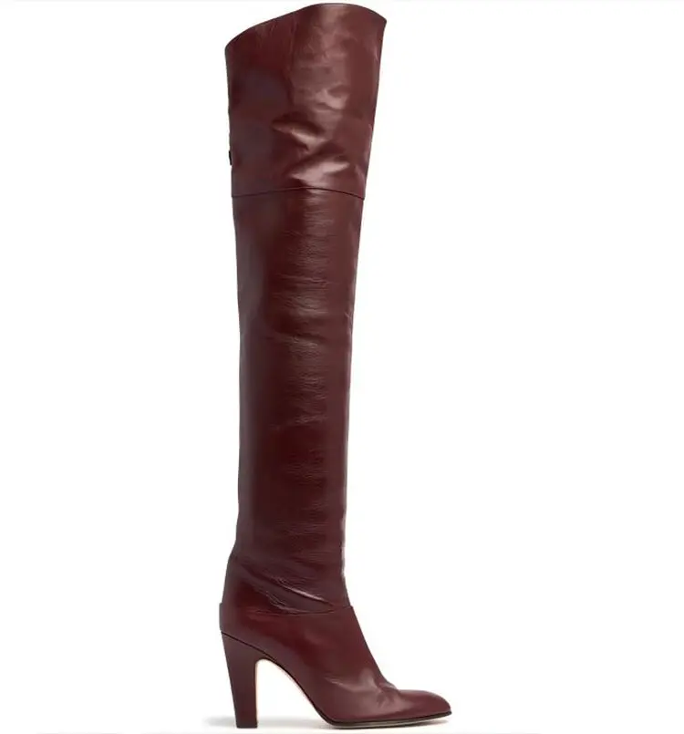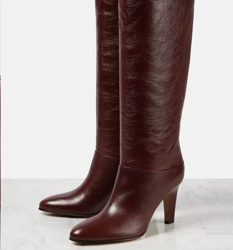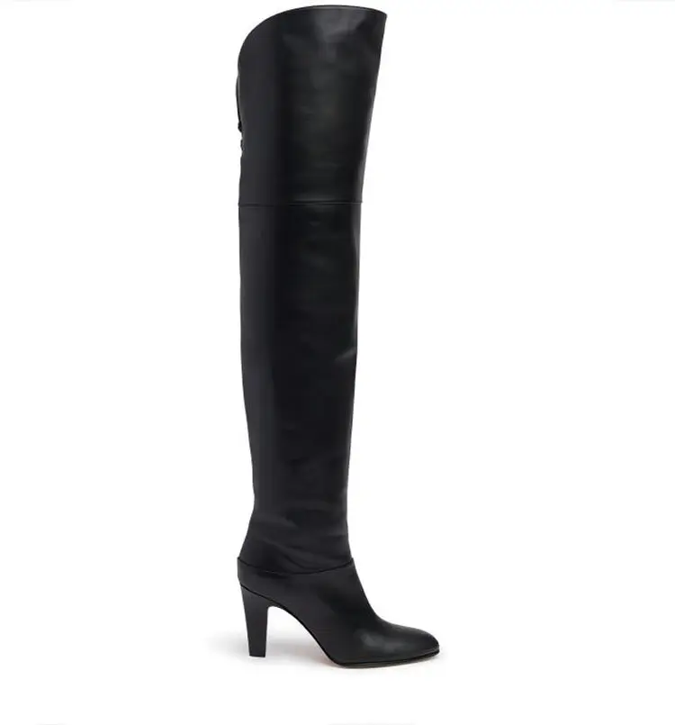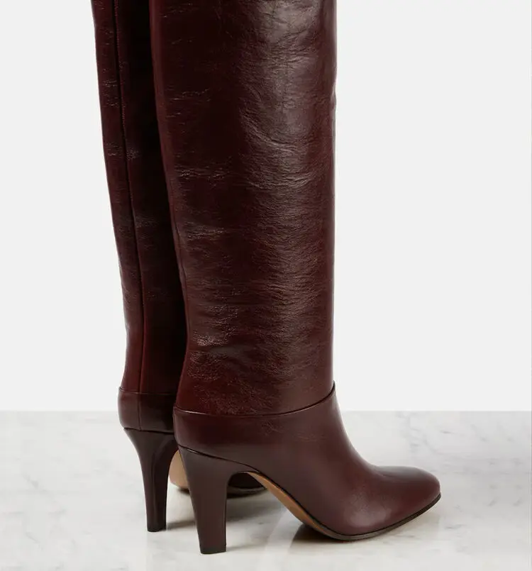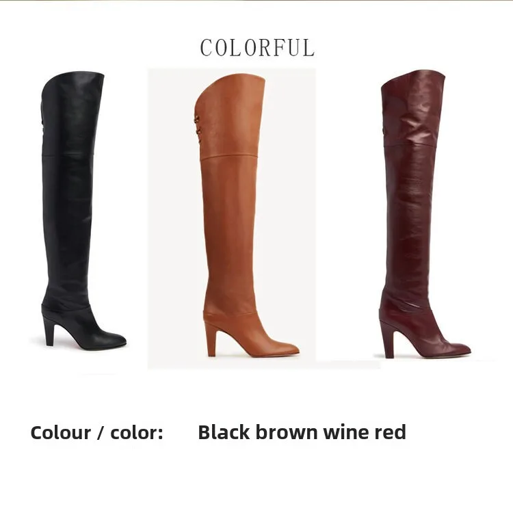 Botas de tacón alto grueso de piel de vaca para mujer, botas por encima de la rodilla a la moda, moda europea y americana, para caminar y banquetes, 2024