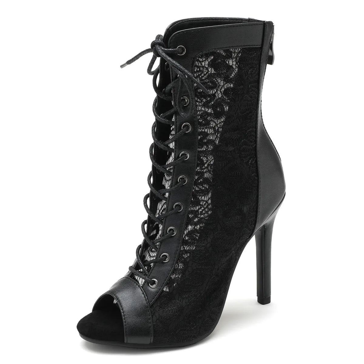 Botas de tacón fino con cordones para mujer, botines cómodos de alta calidad