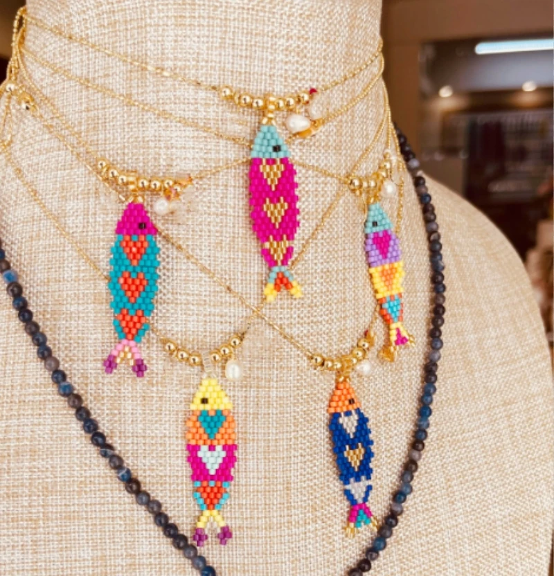 Collar colgante de perlas de pescado elaborado artesanalmente, que combina técnica tradicional con diseño contemporáneo. Cada pieza presenta perlas naturales seleccionadas cuidadosamente, ensartadas en un hilo resistente que garantiza durabilidad y elegancia. El acabado manual asegura que cada collar sea único, con variaciones sutiles que reflejan su origen artesanal. Ideal para complementar looks sofisticados o añadir un toque de distinción a outfits casuales. Una inversión en joyería que trasciende tendencias, perfecta para quien valora la calidad y la autenticidad en sus accesorios.