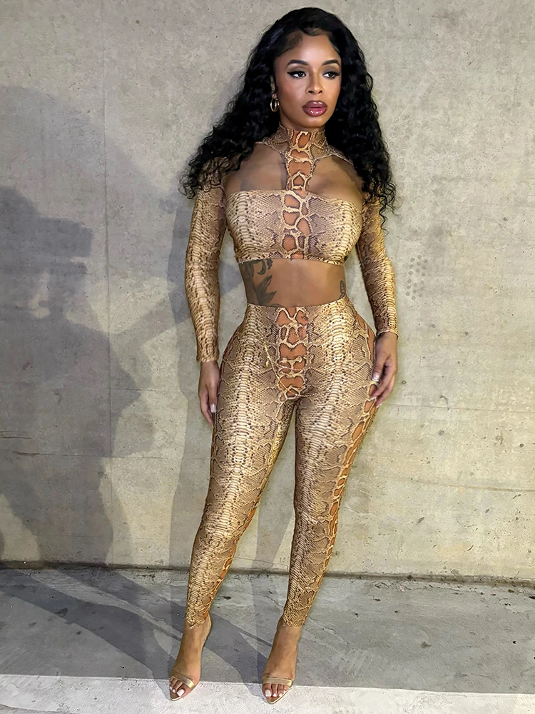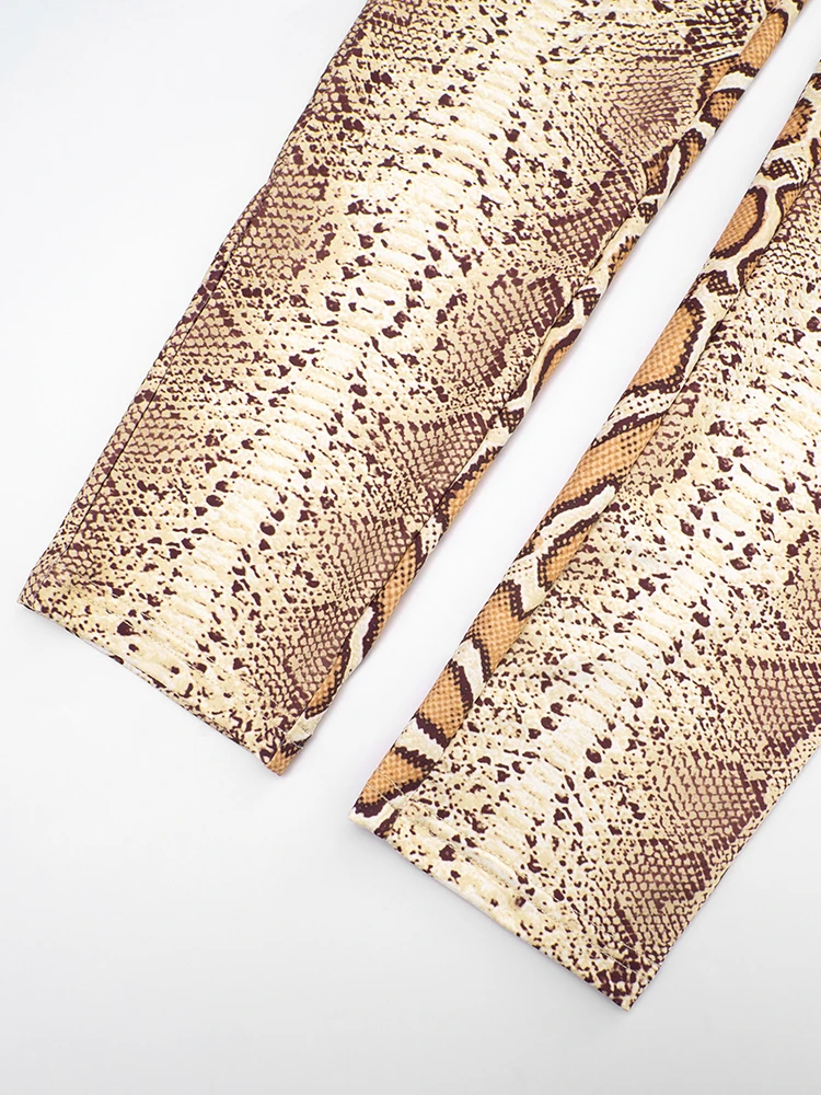 Conjunto de 2 piezas con estampado de serpiente que combina sofisticación y versatilidad. Diseñado con un patrón de serpiente en tonos neutrales, este set ofrece múltiples opciones de styling para ocasiones especiales y eventos. Las piezas se complementan entre sí, permitiendo looks coordinados o separados según tu preferencia. Confeccionado con materiales de calidad que garantizan comodidad y durabilidad. Ideal para quienes buscan prendas statement que transformen su guardarropa con elegancia moderna y tendencia.