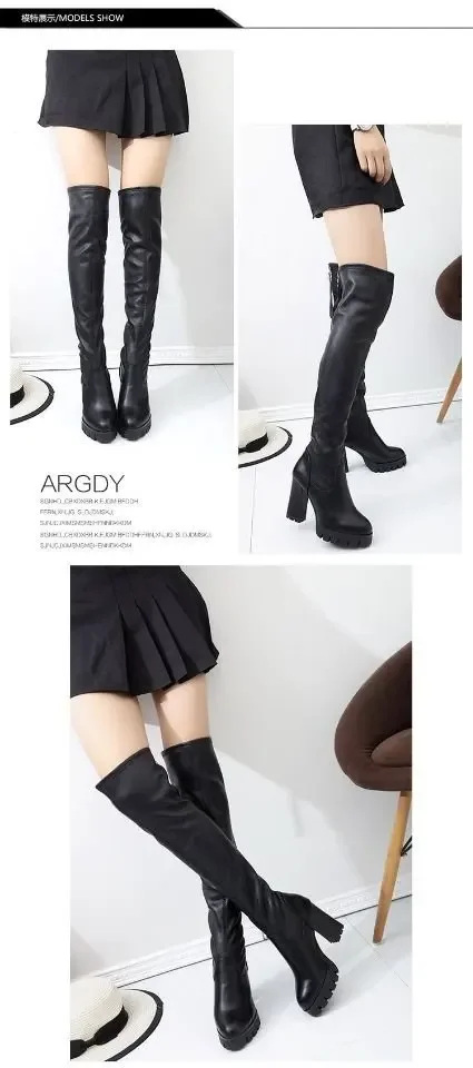 Maogu-Botas De tacón alto con plataforma para Mujer, zapatos largos por encima De la rodilla De cuero, otoño e invierno, 2023