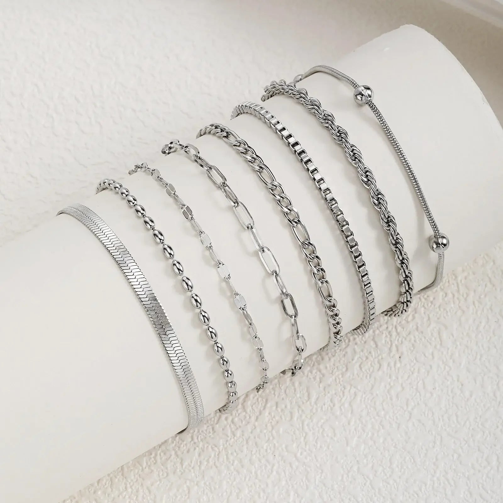 Pulsera de cadena en acabado plateado con diseño elegante y versátil. Confeccionada con materiales de calidad, esta pieza combina sofisticación moderna con un toque clásico que complementa cualquier look. Perfecta para ocasiones especiales o para elevar tu estilo diario, la cadena ofrece un brillo sutil que refleja luz de manera impecable. Su construcción resistente garantiza durabilidad, mientras que el cierre seguro asegura comodidad al usarla. Un accesorio imprescindible para quienes buscan añadir un toque de refinamiento a su colección de joyas.