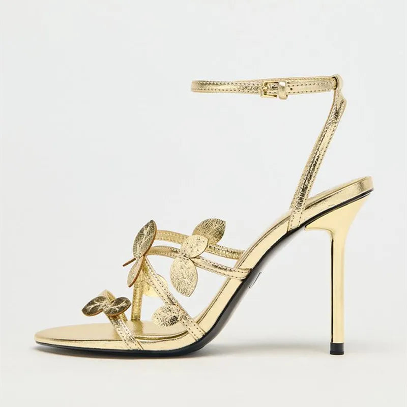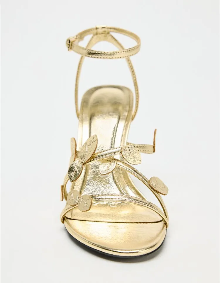 - Zapatos de tacón para mujer: sandalias doradas