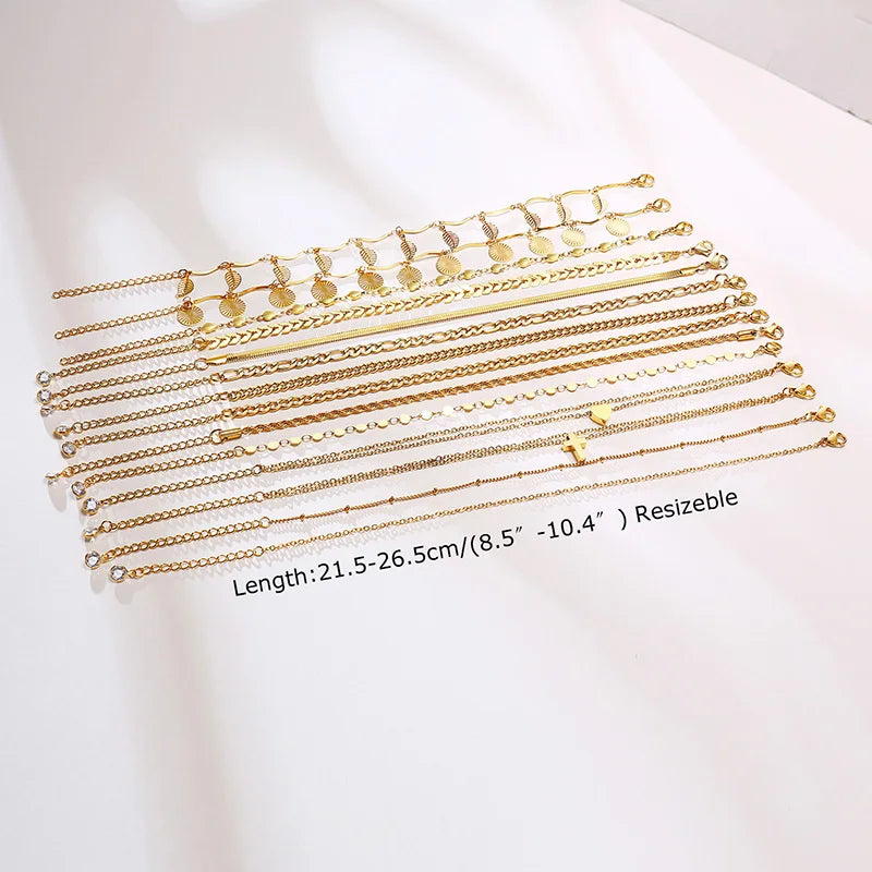 Tobillera elegante confeccionada en acero inoxidable de alta calidad, diseñada para complementar cualquier look con sofisticación. Su cadena delicada ofrece un acabado pulido que resiste el desgaste diario y mantiene su brillo original. Perfecta para usar sola o combinada con otras piezas, esta tobillera añade un toque de lujo minimalista a tu estilo. Ideal para ocasiones especiales o uso cotidiano, combina durabilidad con un diseño atemporal que trasciende tendencias.