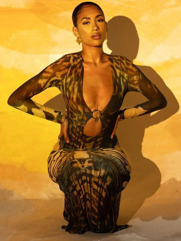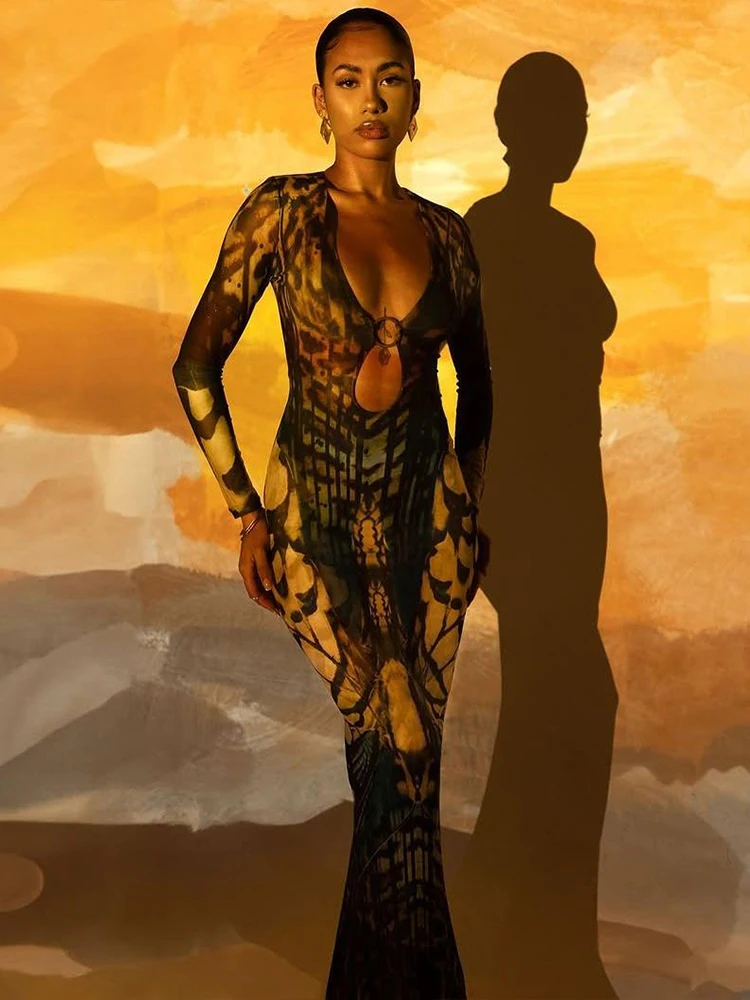 # Vestido de estampado egot Diseñado para quienes buscan impacto visual, este vestido combina un estampado distintivo con un corte moderno que realza la silueta. La tela seleccionada ofrece comodidad sin comprometer el acabado premium, permitiendo movimiento natural durante todo el día. Ideal para eventos, salidas nocturnas o momentos donde deseas destacar con elegancia. Un básico versátil que trasciende tendencias y se adapta a tu estilo personal.